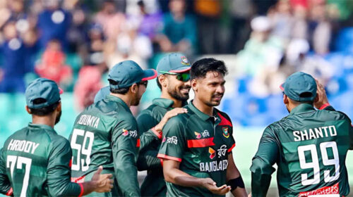 এ ছাড়া মেহেদী হাসান মিরাজ ২২, শরিফুল ইসলাম ১, তানভীর ইসলাম শূন্য রানে আউট হন। এ ছাড়া ৩৩ রানে তাওহীদ হৃদয় ও ৩ রানে মুস্তাফিজুর রহমান অপরাজিত থাকেন।